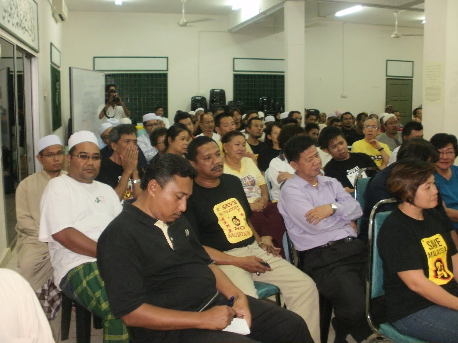 [Selepas majlis dialog, pihak peguam terbabit telah mengedarkan borang untuk diisi oleh rakyat terutamanya di sekitar kawasan yang berisiko besar hadapi ancaman radioaktif yang bakal dikeluarkan oleh kilang tersebut. Borang yang diedarkan telah habis sekelip mata dan terpaksa dicetak semula oleh pihak berkenaan. Sesungguhnya, rakyat tetap mahu memastikan Lynas dinyah keluar dari bumi Kuantan buat selama-lamanya. Dalam pada itu, kita juga terkejut apabila pihak peguam terbabit melaporkan mereka kecewa dengan tindakan media arus perdana terutamanya yang berbahasa Melayu gara-gara tidak menyiarkan kenyataan media yang dibuat oleh pihaknya ketika mesyuarat khas baru-baru ini. Satu resolusi telah dibentuk untuk membantu rakyat dalam menangani isu tersebut. Difahamkan hanya akhbar Sinar Harian, akhbar berbahasa Cina dan Inggeris sahaja yang menyiarkan kenyataan media itu. Turut hadir ialah Ustaz Nasron (YDP PAS Indera Mahkota), Andansura (Timbalan Ketua PAS Indera Mahkota), Ustaz Suhaimi (Naib Ketua PAS Indera Mahkota) dan beberapa lagi yang lain]. |