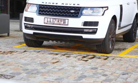 张伯伦的路虎的车身下画着残疾人停车标志,显然这是一个残疾人停车位。