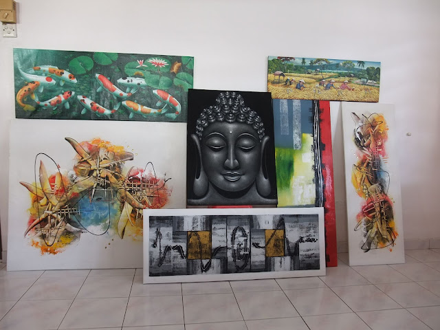 平均小的120cm * 45cm 画一个是RM18(50K Rp) 。大的120cm*100cm是RM36(100k Rp). 但是必须会减价。 |