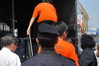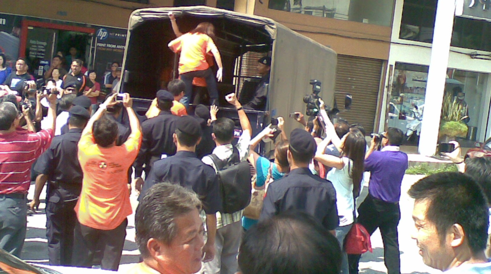 [size=85%]A[size=85%]ktivis yang ditangkap dimasukkan dalam trak polis untuk dibawa ke balai