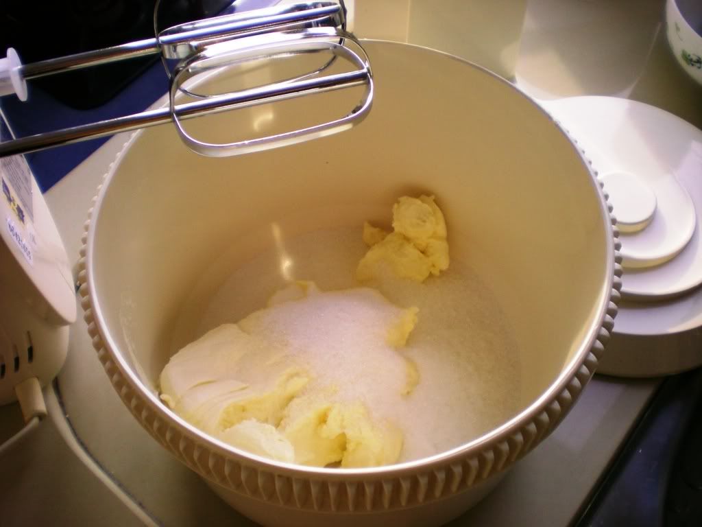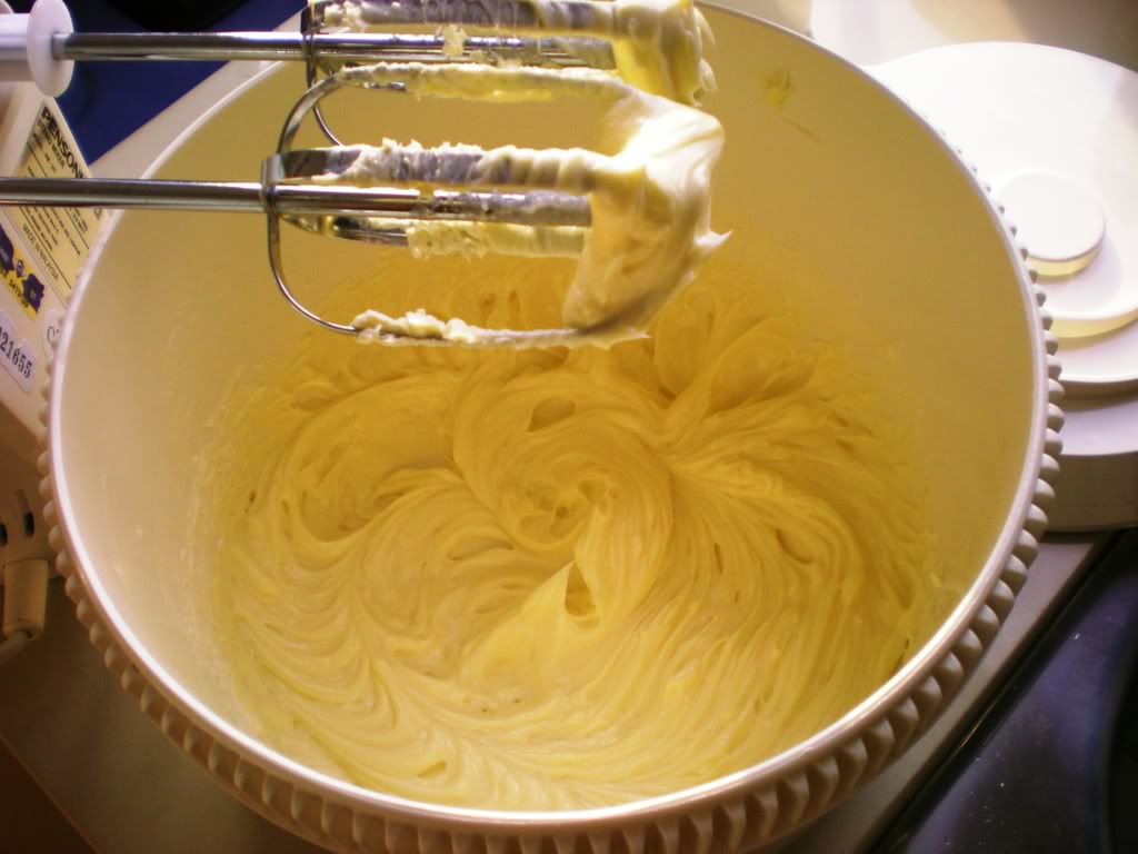 3. cream cheese, 牛油和幼糖搅拌至均匀.