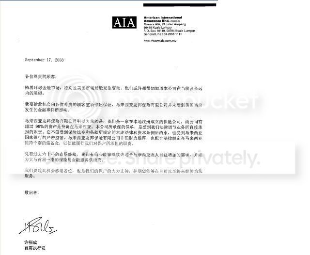就因为AIG是大公司,才会引起这样大的影响!不用担心啦,AIA Malaysia肯定没事的! |