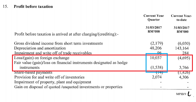 MPI在这个季度有RM10.037 mil的外汇亏损以及RM1.538的Hedging Gain,相加起来亏损了RM8.5 mil。而上个季度的外汇+Hedging却有RM3.27 mil的盈利,两个季度相差了RM11.77 mil,这也是导致盈利QOQ下滑的主因。不过总体而言,公司还是受惠于美金汇率走高,因此最新的两个季度营业额平均接近RM400 mil。