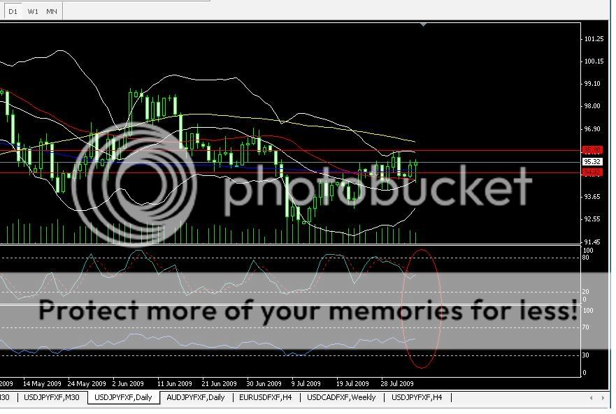 从日图来看,rsi 14, stoch 5,3,3 都来到了中间,这样的情况比较难于捉摸,上下可能性都满大,所以避开继续交易比较安全。 |