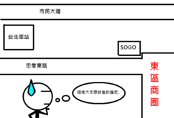 東區大地標之一的SOGO百貨 單看往來的車潮就可以知道這裡的繁華 東區內的產業包羅萬象 每一項都符合年輕人求新鮮的特質 若你想找漂亮、便宜的衣服 除了最簡單的路邊擺攤式的小攤販
