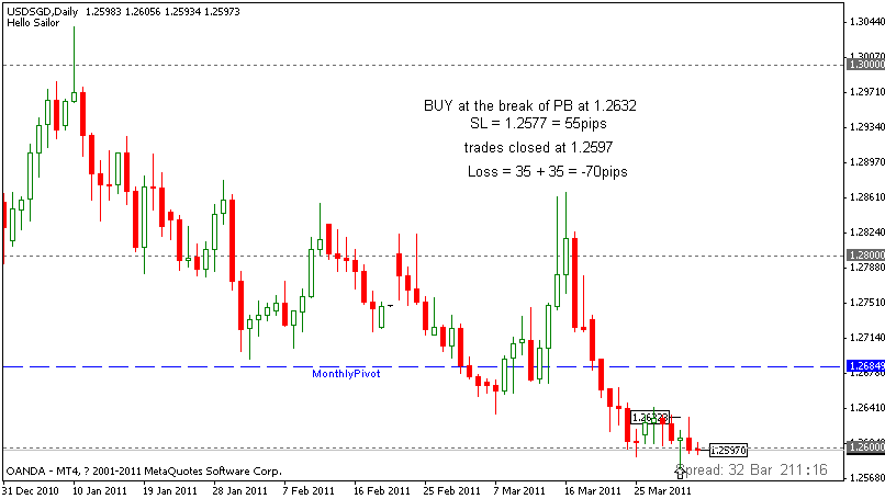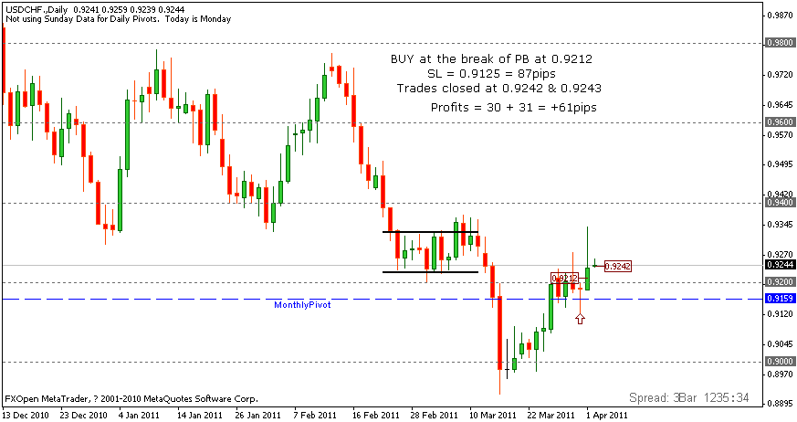 USDCHF 3103-0104 --> This should be a nice trade when the high of the pin bar rejected the FTA. It was a pity that the bear is not strong.