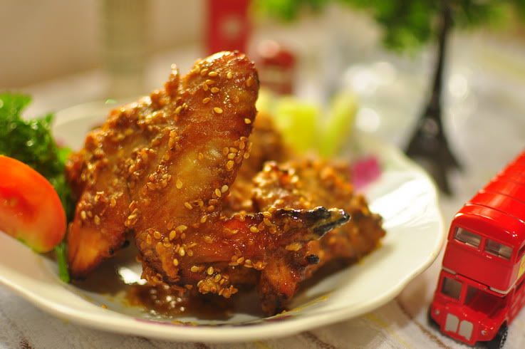 豪油﹐生抽(我叫醬油)﹐雞湯﹐召興酒﹐糖﹐黑醬油﹐胡椒粉﹐排骨醬煮成汁﹐加點粟粉變茨﹐最後贊上麻油(給它油亮亮﹐美美)