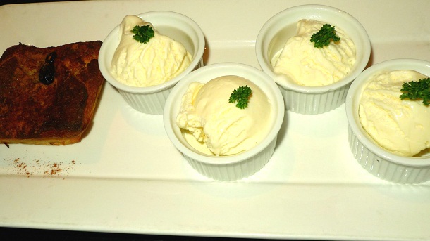 香草雪糕是给四人份的,那奶油面包布丁也只是小小的一块,