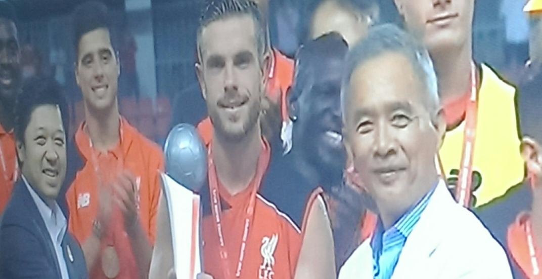 由于天气非常湿热,比赛进行到第25分钟,裁判暂停了比赛让球员到场边喝水。第32分钟,罗西特接兰伯特传球后头球攻门,泰国门将奋力单手将球挡出。上半场快结束前,特谢拉开出角球,萨科头球建功,利物浦2-0。