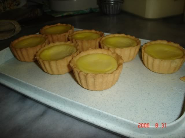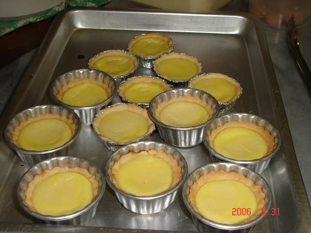 11.30pm与他通话后我闲着没事做就去搞了这东东。。。1 1/2 小时就搞定了。。。可是有谁能告诉我为什么我做的蛋塔总是凹进去的。。。。显。。。
