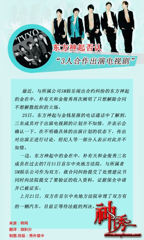 [转载] [09-25][神诱中文网]東方神起否認“3人合作出演電視劇”