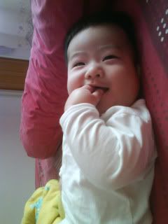 到目前为止蕾宝宝醒来都是在舔自己的手。。。只有在我叫她时才会对我笑。。。 |
