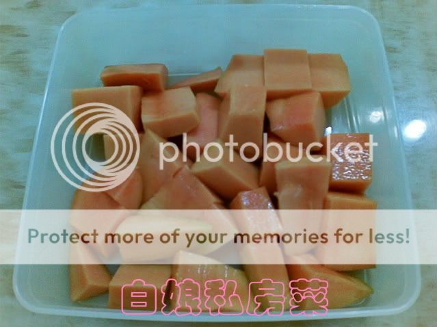 红槽南乳焖花肉其实我是用南乳焖花肉再加1-2汤匙红槽酱进去焖的。。更加香哦!。。。调味料是南乳,蒜碎,小葱碎,姜末,8角,桂皮,蚝油,糖,绍兴酒,麻油,红槽,水等等调好一碗。。然后花肉串汤热水,蒜和葱爆香,下肉拌炒一会儿,下调味料。。就全部一起焖到肉软。。。试试看。。 |