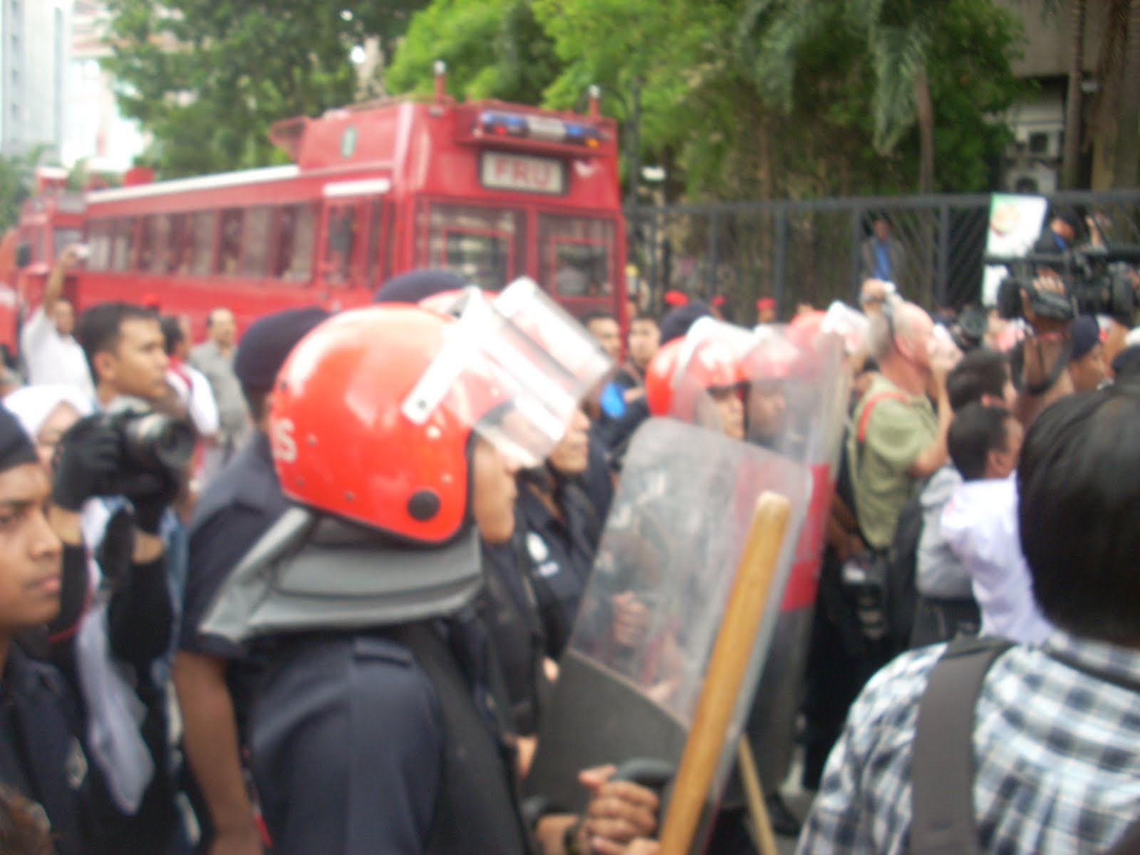 Mereka dikawal lebih 50 anggota polis termasuk Unit Simpanan Persekutuan (FRU). Malah kelihatan sebuah bas dan sebuah kereta meriam air diparkir di hadapan kedutaan itu. Beberapa siri penerangan yang dianjurkan Kerajaan Negeri Pahang di sekitar Kuantan baru-baru ini dilihat tidak beri kesan positif. Kerajaan pada 22 April lalu telah juga mengumumkan penubuhan satu panel bebas bagi menjalankan kajian terhadap aspek kesihatan dan keselamatan kilang itu. Sebelum ini, ramai aktivis yang ditangkap oleh pihak berkuasa kerana mengadakan demonstrasi di seluruh negara. Bantahan hari ini diketuai pemimpin PAS Pahang Ustaz Suhaimi Saad yang merupakan