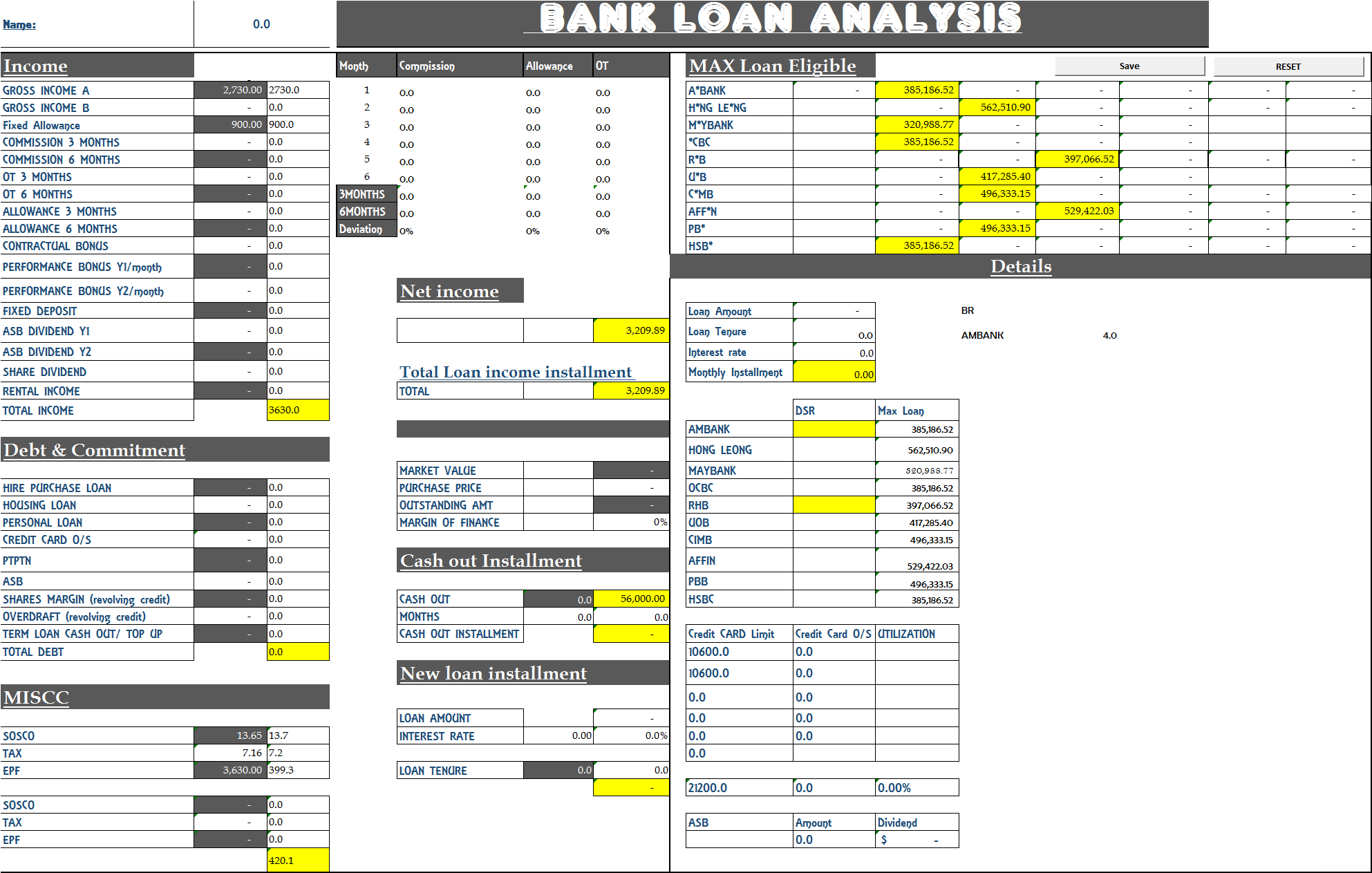 想询问一下,以我以下的profile如果想要购屋。最高的loan额能去到多少:-