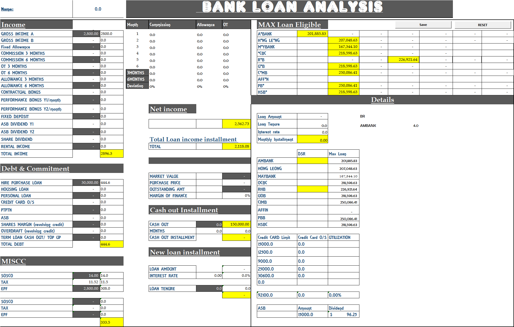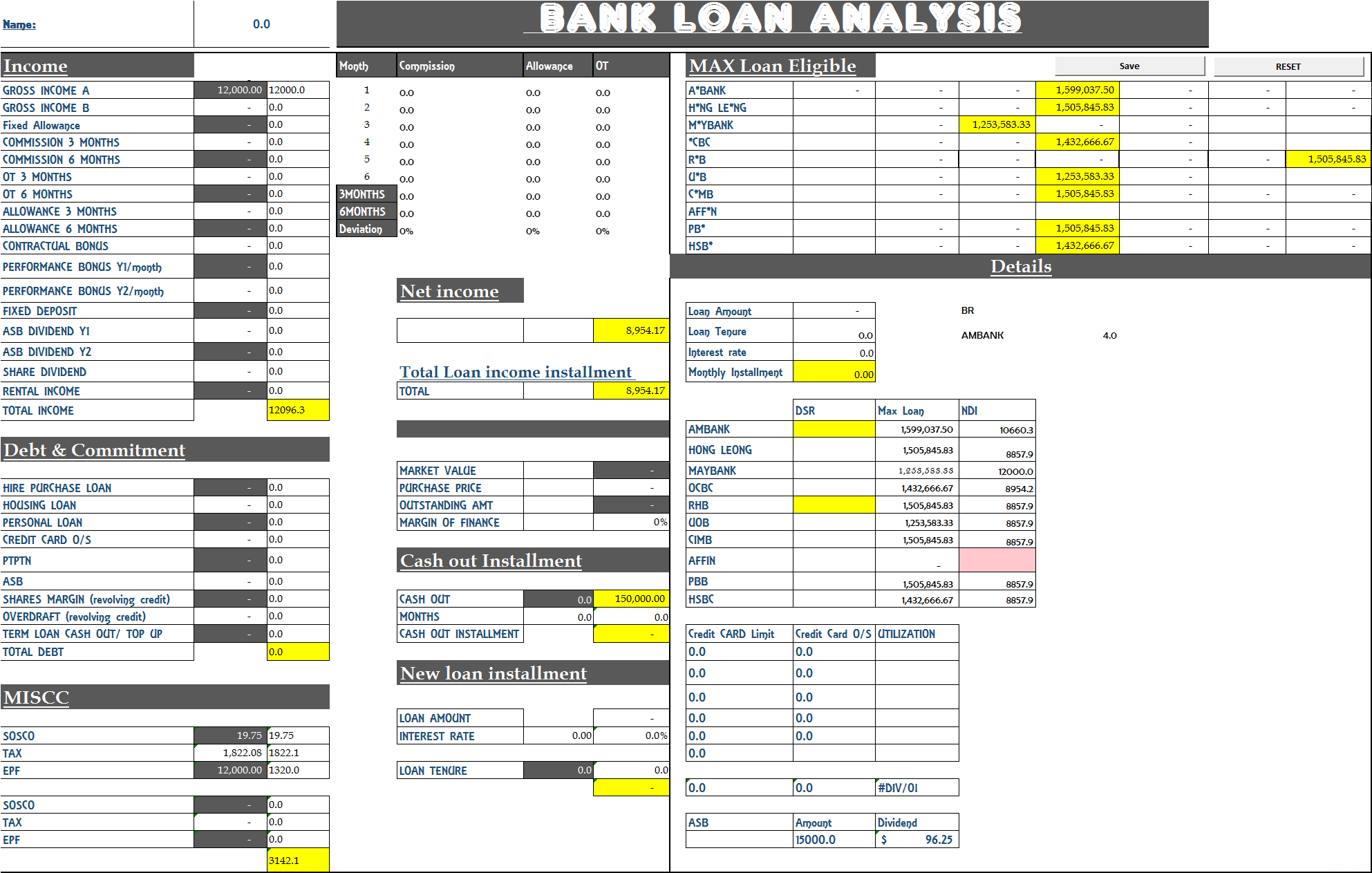 想询问一下,以我以下的profile如果想要购屋。最高的loan额能去到多少:-