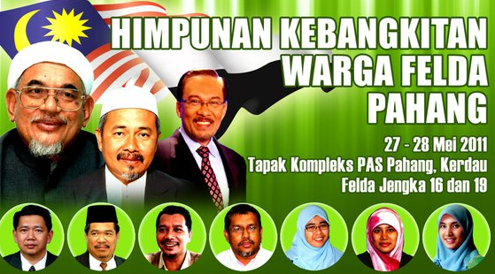 TEMERLOH, 25 Mei: PAS Pahang dengan kerjasama Lajnah Tanah PAS Pusat akan menganjurkan Himpunan Raksasa Warga Felda di sekitar Jengka dan Kerdau pada 27 dan 28 Mei ini.