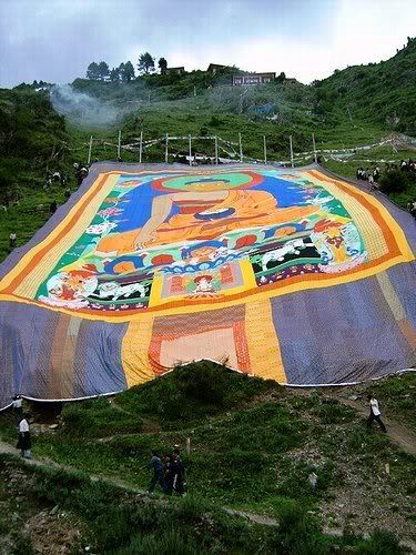 法會期間,亦會依傳統來舉行曬大佛的儀式,以顯法之主的「釋迦牟尼佛」大唐卡需要三百多人才扛得動,而密法之主的「蓮花生大士」大唐卡則是一百多人。蒙嘎浪!(為梵音,譯:大吉祥) |