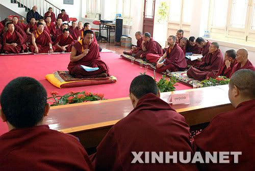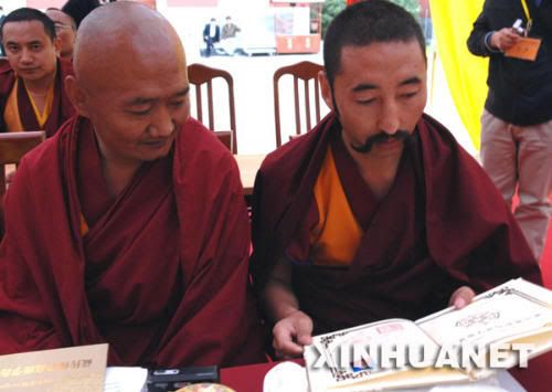 10月17日,一位藏传佛教格鲁派喇嘛在参加论文答辩考试。 |