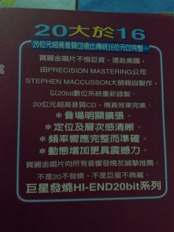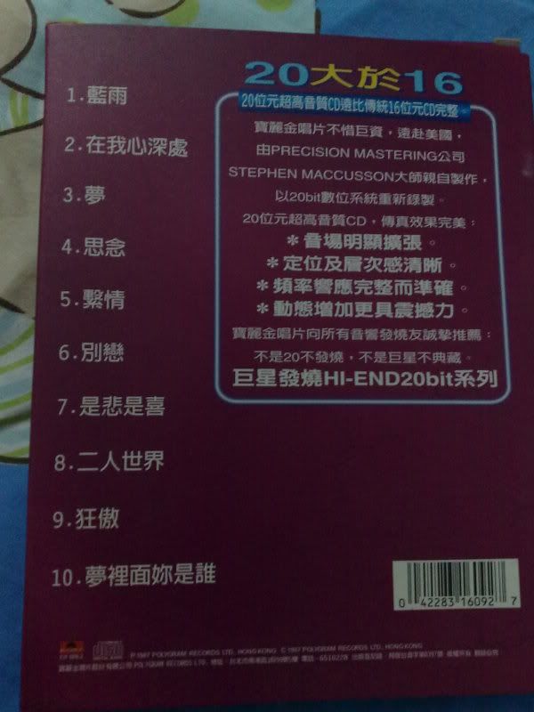 话外 : 昨天我的妹妹买了几张翻版的cd (卫兰) 的, 原来我国的翻版cd 都瞒有素质的 |