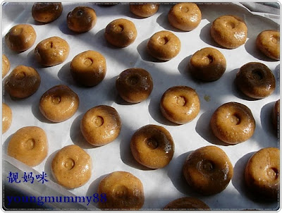 这是做好造型的花生饼~用原子笔笔盖在中间轻轻戳个洞~