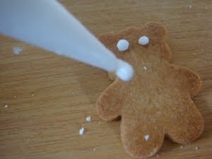 5.将蛋白糖霜放入挤花袋,在烤好的姜饼上画上喜欢的图样