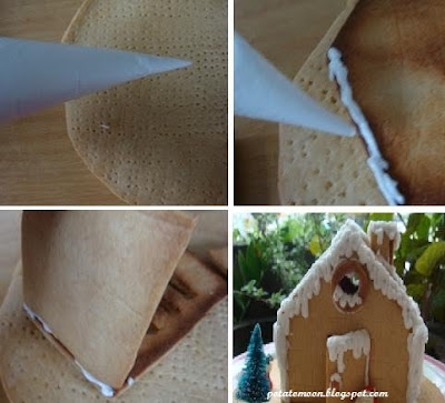 1.在屋子接合處擠上蛋白糖霜