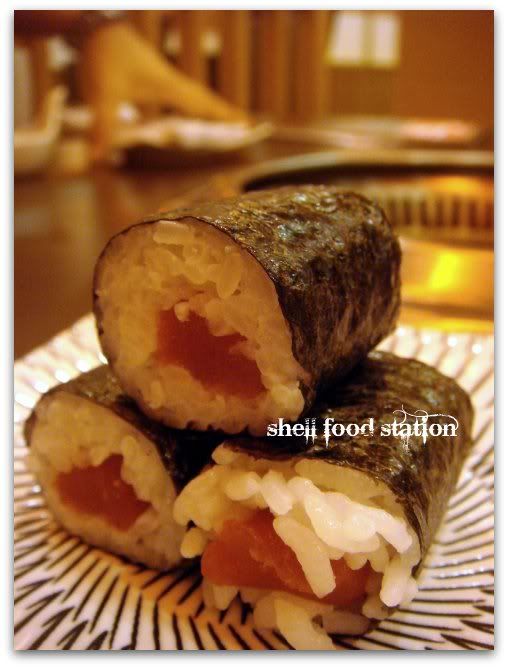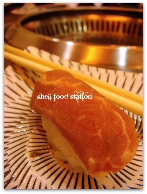 raw beef sushi ..生牛肉sushi,我只吃半塊