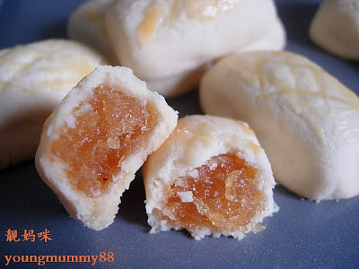 这个是第1轮做的黄梨酥,皮薄馅多,但是就是馅料太多,反而觉得很甜~呵呵。。。