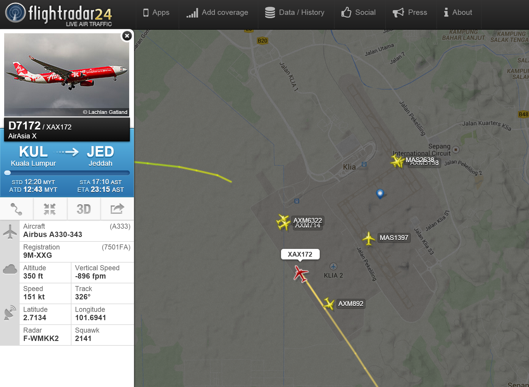 flightradar24陸續在推特上更新說明,指D7172航班沒有遇到緊急事故,只是正在以消耗燃油的方式來減輕機身重量,以便安全降落。當飛機在KLIA機場著陸後,推特也在第一時間更新訊息,通報飛機安全降落的訊息。