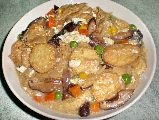 材料: 日本豆腐, 香菇, 雜豆, 腐竹, 雞蛋和紅蔥頭.