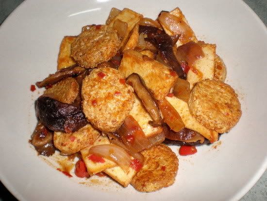 nanas乱来煮出来的辣炒香菇豆腐看起来还不错,不过我希望可以煮多点酱汁,这样比较好捞饭吃