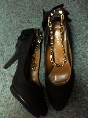 Vincci的黑色麝皮高跟鞋,金色的链子扣上去又是另一种感觉,很特别!