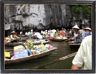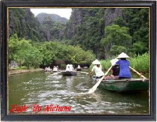 当划船行程结束了,我们到刚才吃午饭的店等车来载我们。 这时,那位摄影师出现了,我的妈呀!阴魂不散,我到底那里对不起她呀! 真有她的,叫她别拍,她居然拍了好几张我们一家三口的照片。 最气煞的是,照里的我都是拿手挡脸,好像做了什么错事一样! 我都叫她别拍了,她硬是要拍,我当然不肯收下那批我非常不满意的作品。 其实有点矛盾,我不买下那些照片,又担心自己的照片在别人的手里, 不知会落成什么后果;跟她买下,我又咽不下这只死猫! 她的急是表现在脸上,我的急是在心里面,上个厕所再来想怎样好了。 我出来的时候,居然不见她的踪影了,原来她走投无路,硬是把照片卖给了 和我们一起同行的一位来自胡志明的同胞。我想那位同胞应该不忍心让她 损失,就帮她买了那些照片吧!当那位团友把照片递给我,说送给我时, 我还真佩服那位摄影师的高手段呢! 当然我不可能那么厚脸皮真的免费收下那些照片,问了那位团友买多少钱, 同胞价果然不一样,把钱还给他,跟他道谢。 和越南人纠缠,还真的吃亏!