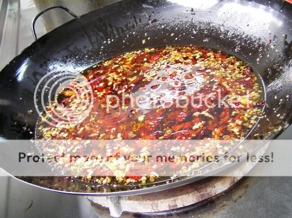 起锅热油(低温),不能冒烟,放入花椒,当归,肉桂皮,和八角,缓缓地爆香出味(6分钟)取出要材料(可以不取也行);最后放入红辣椒,爆至肉身见干的时候,放入辣椒干,爆香有豆香味出来,最后顺序放入黑豆酱,海盐少许,白芝麻即可。待冷后放入冰箱收藏。