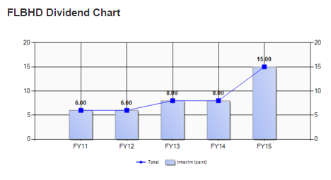 以上是FLBHD历年派息的数据,可以看到股息从以前的6仙缓慢的增长到现在15仙。只要公司的盈利持续增长,相信股息还是有机会增长的。