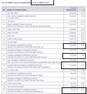 Notice of Interest Sub. S-hldr (29A)Particulars of Substantial Securities HolderName | MR KOON YEW YIN | Nationality/Country of incorporation | Malaysia | Descriptions (Class & nominal value) | Ordinary Shares of RM0.50 each | Name & address of registered holder | 1. TA Nominees (Tempatan) Sdn Bhd Pledged Securities Account for Koon Yew Yin1st Floor, Plaza Teh Teng SengNo. 227 Jalan Kampar30250 Ipoh, Perak2. Kenanga Nominees (Tempatan) Sdn Bhd Pledged Securities Account for Koon Yew Yin (002)Ground Floor, Bangunan ECM Libra8 Jalan Damansara Endah, Damansara Heights50490 Kuala Lumpur3. Alliancegroup Nominees (Tempatan) Sdn Bhd Pledged Securities Account for Koon Yew Yin (6000051)17th Floor, Menara Multi-PurposeCapital Square, No. 8 Jalan Munshi Abdullah50100 Kuala Lumpur4. Maybank Nominees (Tempatan) Sdn Bhd Pledged Securities Account for Koon Yew Yin14th Floor, Menara Maybank100, Jalan Tun Perak50050 Kuala Lumpur5. Affin Hwang (Tempatan) Sdn Bhd Pledged Securities Account for Koon Yew YinNo. 1, Lintang Pekan BaruOff Jalan Meru41050 Klang, Selangor6. RHB Nominees (Tempatan) Sdn Bhd Pledged Securities Account for Koon Yew Yin21-25 Jalan Seenivasagam30450 Ipoh, Perak |
