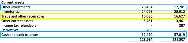 从上图我们可以看到Trade and other receivables减少了不少,那就意味着公司收回了至少6.5 mil的账目。加上这个季度赚到的钱,其实公司的现金流有了很大的进步。