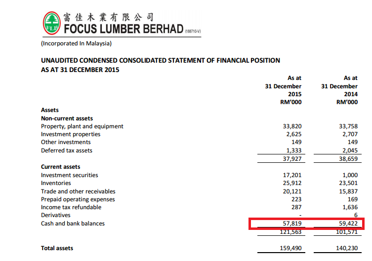 公司于31-12-2015 现金有5781万,无任何债务.