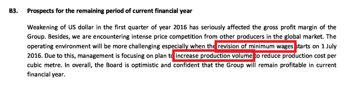 - 不过来到了2016年,公司享有较低的Tax rate,主要是因为因为他们出口plywood以及laminated veneer wood至国外,所以享有Double tax deduction Benefit。