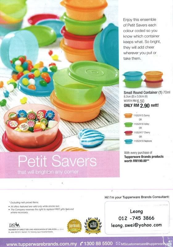 Let's eat out set这套也是很划算,因为有扣了又扣,原价RM162.40,然后tupperware公司扣15%,现在我member price又扣20%=RM110.40,还有送两个Classic mini bowl 450ml。Let's eat out set这套的碟子和handi bowl都很漂亮,如果你买了后一定很喜欢,碟子的颜色都很漂亮。