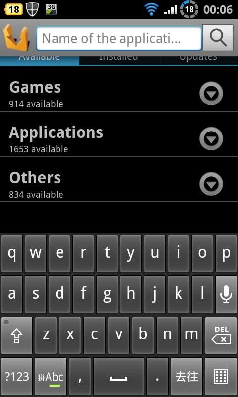 接着就是重头戏。Search。Search 就是寻找的意思。寻找什么?当然是寻找你要的 Apps 啦,要不然还有什么???也是这个 Aptiode 最主要的功能。俺要破解啦