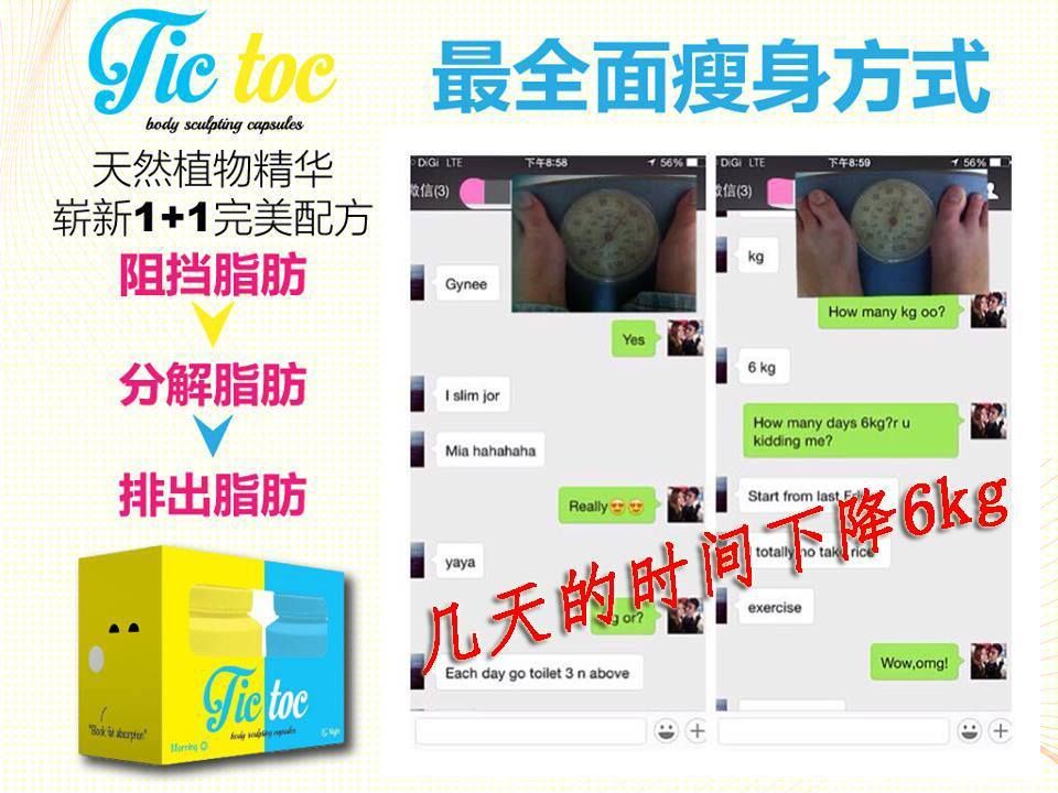 早晚有Tic Toc,不必再担心瘦不下来~Tic Toc帮你燃烧脂肪、分解脂肪、排出脂肪!1个价钱,2个配方!首个结合早晚完美1+1配方的瘦身胶囊产品!简单快瘦!