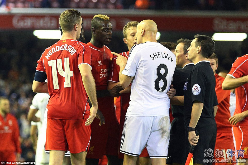 在2014-15赛季联赛杯第四轮中,利物浦在第86分钟和第95分钟连入两球,成功逆转斯旺西。此前遭遇球荒的巴洛特利,在替补上场后接博里尼传中为红军扳平比分。不过在赛后,巴神又表现出了自己浮躁的一面,只见意大利人走到前利物浦球员西尔维身旁,轻佻地挑了挑对方的耳朵,这个挑衅的动作引起了西尔维的强烈不满,拉住巴洛特利就要同其理论。不过在围上前来的利物浦球员劝说和裁判的干预下,这一次的挑衅事件并未引发为严重的冲突。
