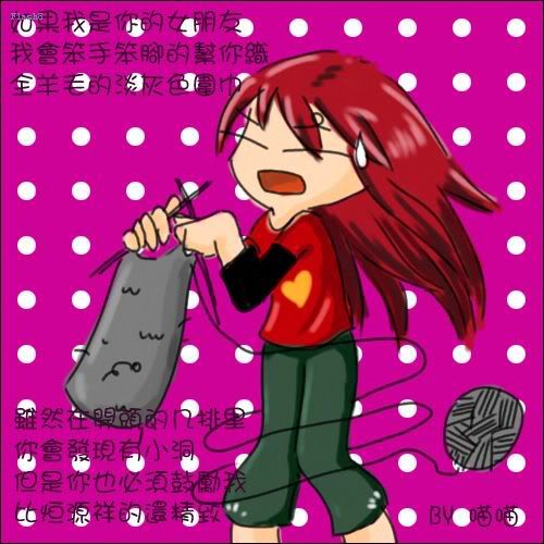 那粉红色的衣服你要常常穿喔,虽然只是简单的LOL,但没有缝纫天份的我可是花了很多时间,刺伤手指完成的哩