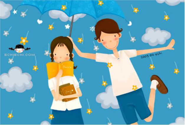 看到这张画,让我想起我们第一次约会,那天下着雨,你替我撑着伞,有人保护自己珍惜自己的感觉,真好!