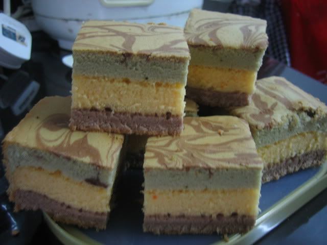(每個layer不必熟透只要有點硬硬就可以倒入第二layer了) |