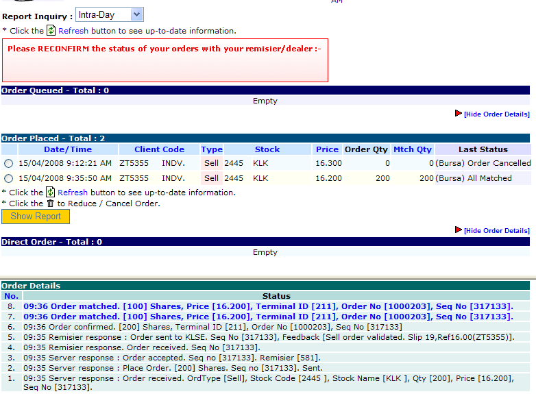 大头想问,大头可以place more than one buy order吗??如果原本要买1lot,但放3个orders,2个matched,那么大头就变成从买1lot,现在要买2lot?? |