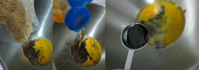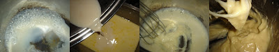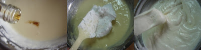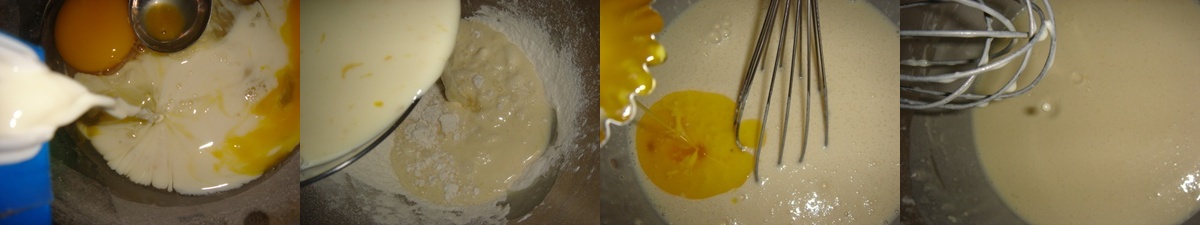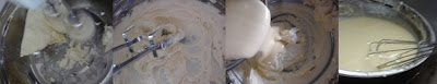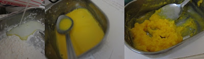 1.将蛋黄+糖+盐用手搅拌到蛋黄变浅色糖也溶解了,慢慢的加入蔬菜油,这时可以加入香兰汁或橙汁待搅拌均匀后就可以加入低粉和发粉了,待搅拌后就放一旁备用.