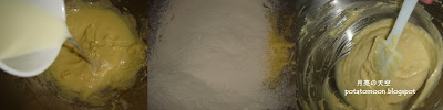 4.将面糊倒入烤模里(烤模是不可以涂油的,也不可以用non-stick的)放入于预热的烤箱